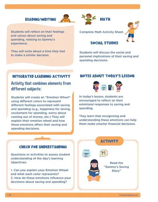 Financial Literacy and Mathematical Applications: Here, children unravel the story of money and its mathematical intricacies, exploring art and design in currency and the practicalities of saving, spending, and prioritizing. Through real-life scenarios, children develop a nuanced understanding of financial decisions and the emotions tied to value.